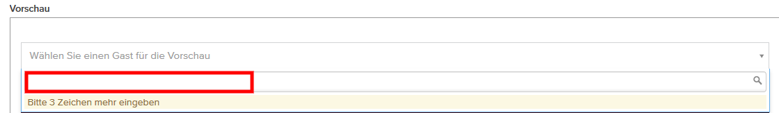 2. Sie können die Anzeige für einen bestimmten Gast testen, in dem Sie einen Gastnamen im Eingabefeld direkt über der Vorschau eingeben.