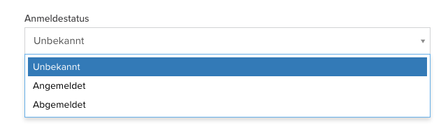 - Wählen Sie den gewünschten Status aus dem Dropdown "Anmeldestatus" und speichern Sie den Eintrag.