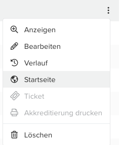 - Wählen Sie im Schnellmenü des jeweiligen Gasts die Option "Startseite". Sie werden nun als dieser Gast auf die Event-Website geführt.