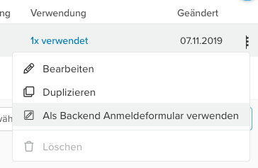 Sie können in > Formulare ein eigenes Formular anlegen, welches nur über das Backend erreichbar ist. Diese Option finden Sie in > Formulare in der Formularliste im Schnellmenü.