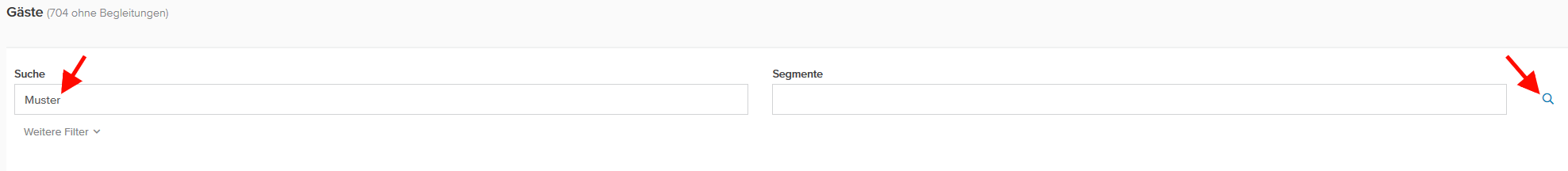 Um nach einem Gast zu suchen öffnen Sie > Gäste und geben Sie die Gastdaten im Suchfeld ein.