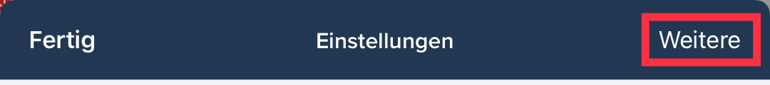 • Durch Tippen auf das Feld "Weitere" oben links in den Einstellungen, öffnet sich eine zusätzliche Seite.