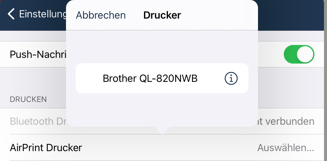 • "AirPrint Drucker": Wählen Sie hier verfügbare Drucker aus
