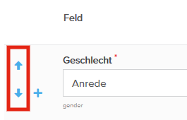 Mit den Pfeilen links neben der Feldbezeichung können Sie die Position des Feldes im Formular verschieben.