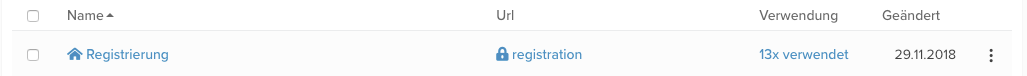 - Wie oft eine Seite eingebunden ist, sehen Sie in der Liste in der Spalte “Verwendung”. Klicken Sie auf den Link “… in Verwendung” und es wird zusätzlich angezeigt wo dieser eingebunden ist.
