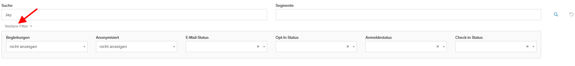 Sie können Ihre Gäste nach folgenden Kriterien filtern: