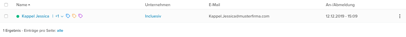 - Unternehmen: Durch Klick auf den Unternehmensnamen werden alle Gäste der Gästeliste angezeigt, die denselben Unternehmensnamen tragen.