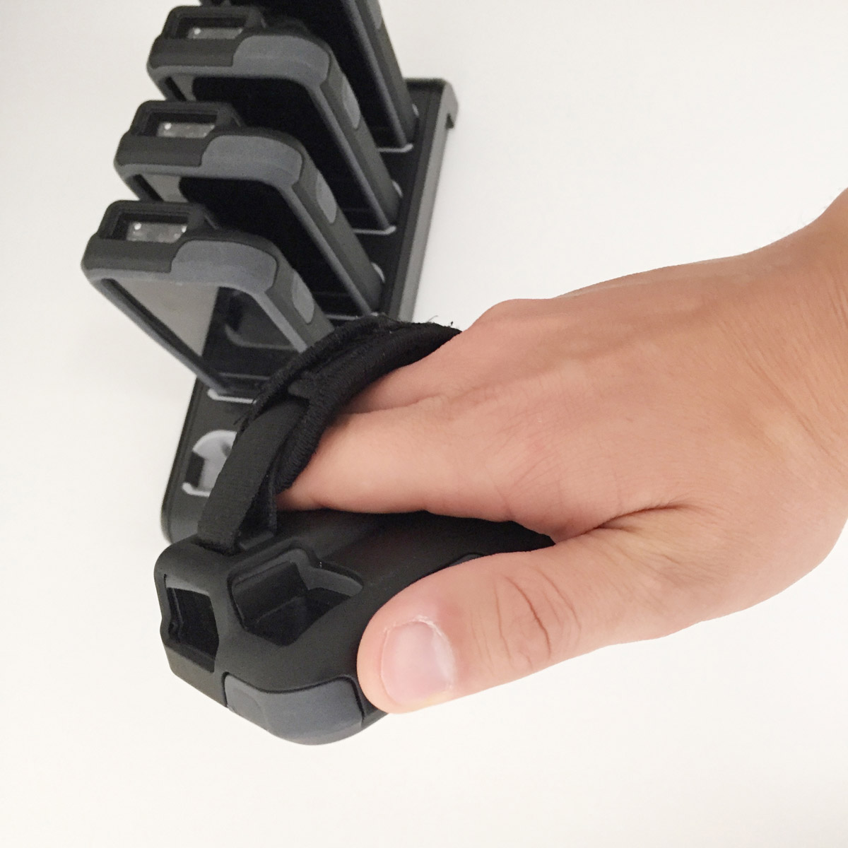 Die Handscanner verfügen über einen Laserscanner für die Erfassung von QR-Codes – die Erfassung erfolgt ohne zeitliche Verzögerung und funktioniert auch bei schlechtem Licht. Die Geräte liegen gut in der Hand und verfügen auf einer Seite über einen Druckknopf, der bequem mit dem Daumen ausgelöst werden kann.