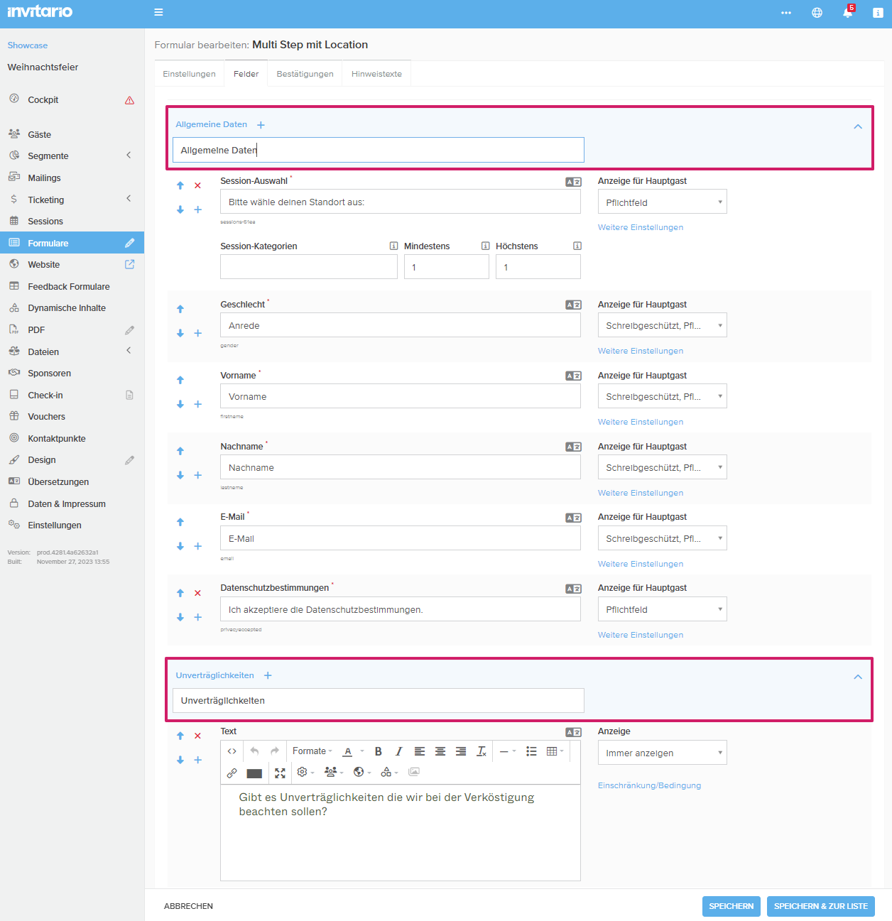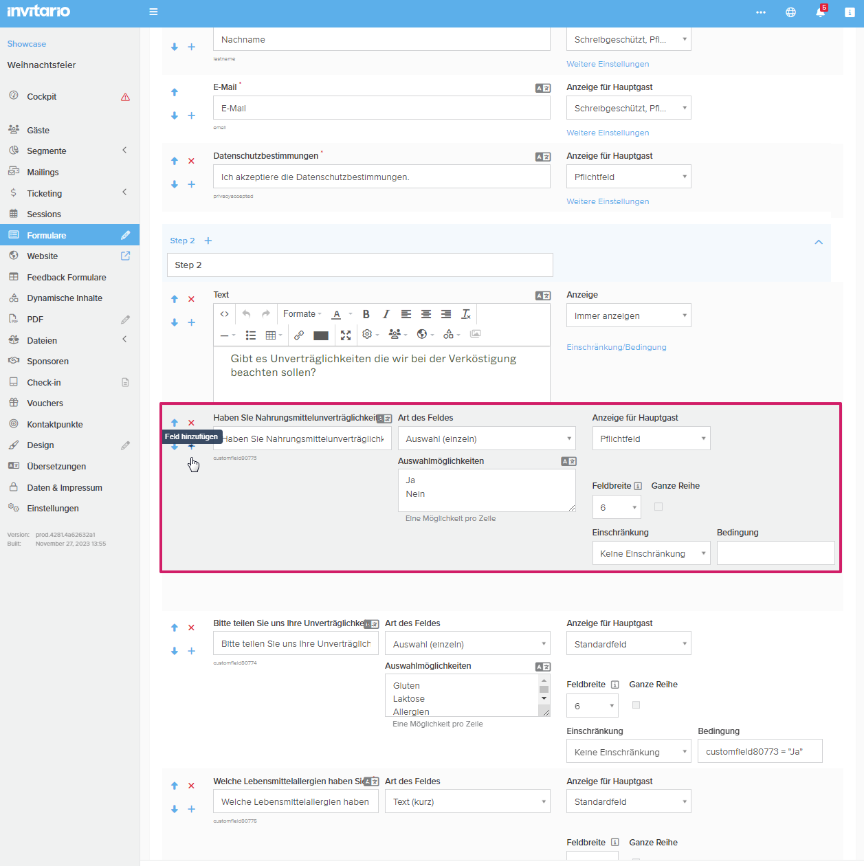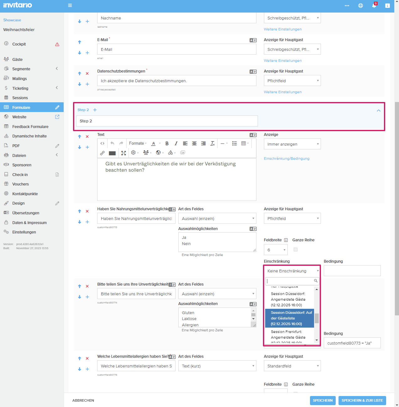 In Kombination mit einem mehrstufigen Formular können ab sofort Bedingungen hinzugefügt werden, die sich auf eine Sitzungsauswahl in einem vorherigen Schritt beziehen.