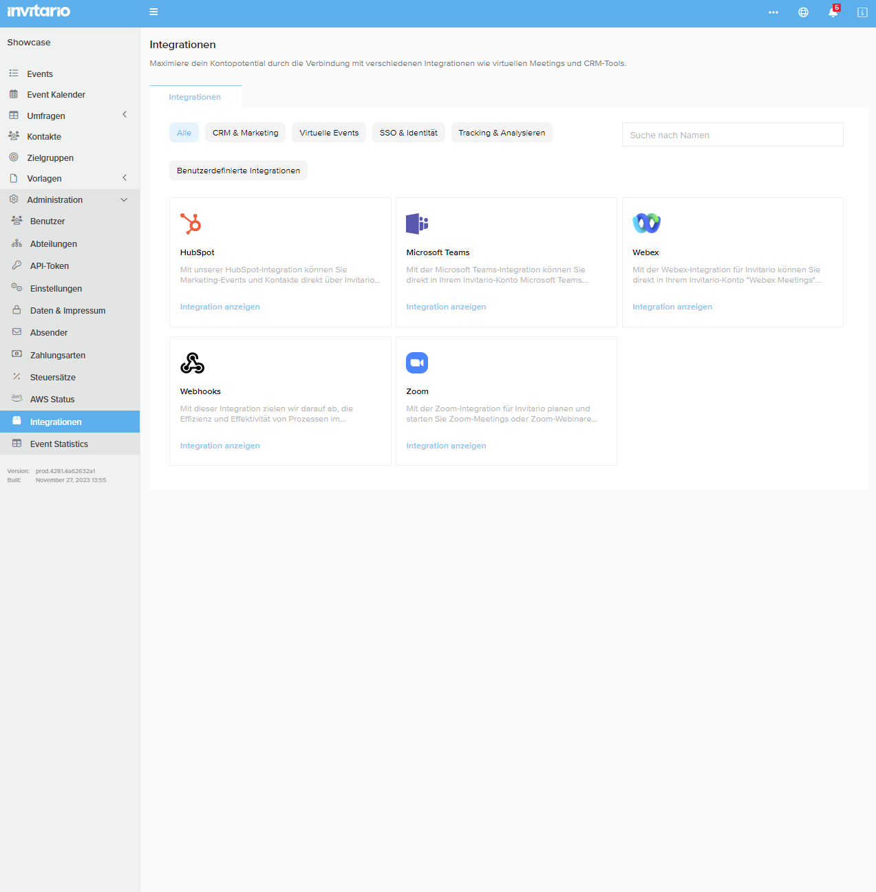 Jetzt sehen Sie alle Möglichkeiten, um Invitario mit anderen Tools zu verbinden, auf einer übersichtlichen Seite.