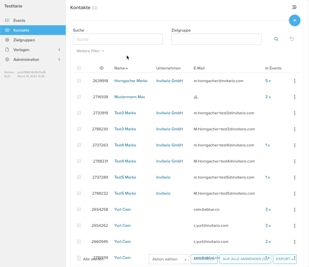 Bei Filterung der Liste durch die Suche (z.B.: Zielgruppe) > Auf Alle Anwenden> Bestätigen