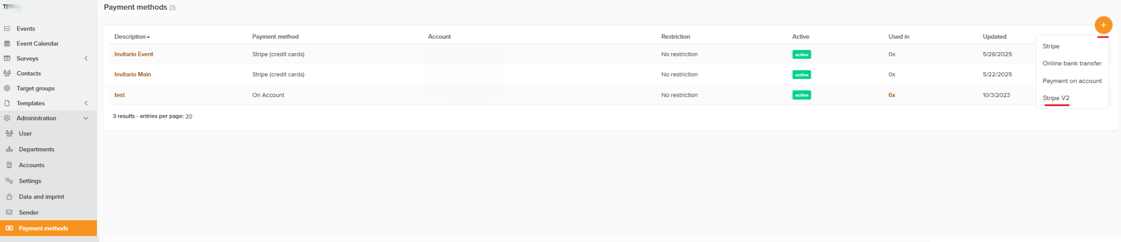 - Wählen Sie „Stripe V2“ als Zahlungsanbieter