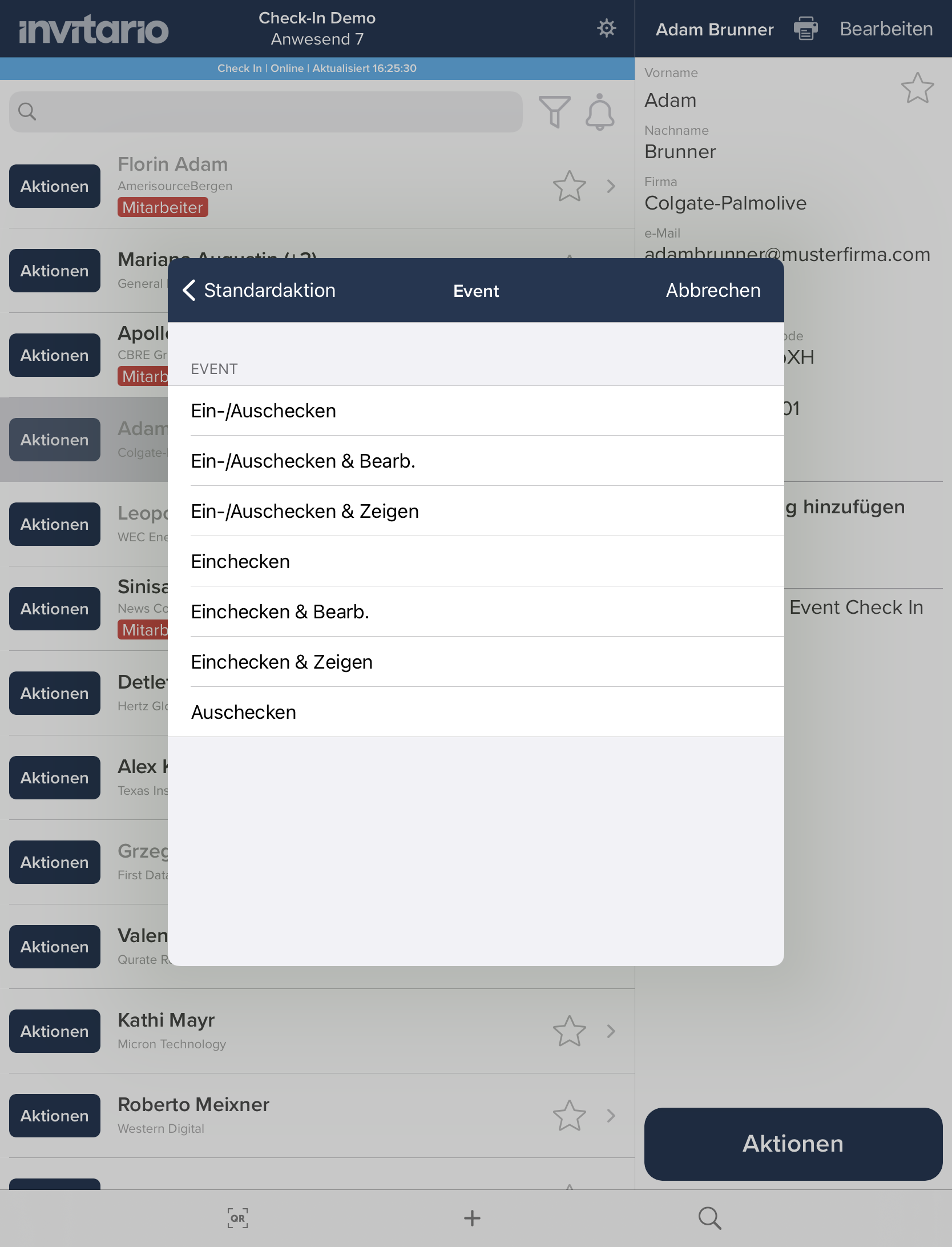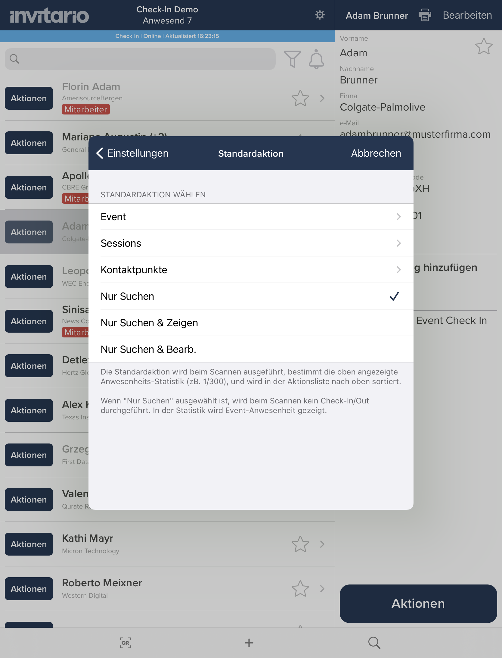 Verwenden der Invitario Check-in-App (iOS) am Event