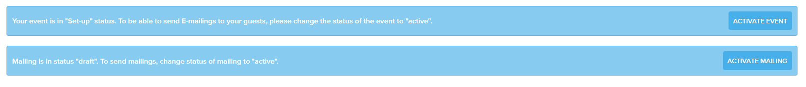 - Every new event and mailing is initially automatically assigned the status “Set up”. Mailings with this status can only be sent to testers and hence cannot be accidentally sent out in bulk.