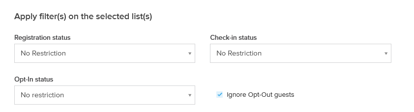 - Check-in status: If, after the event, you only want to send your mailing to, for example, recipients who actually attended the event, select “Attended” from this list.