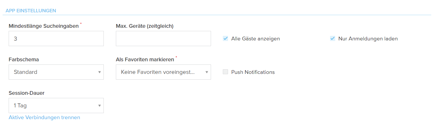 - Session duration: After this time, all active connections (iOS app, web check-in) will be automatically logged out. This helps to prevent unauthorized access to your guest data.